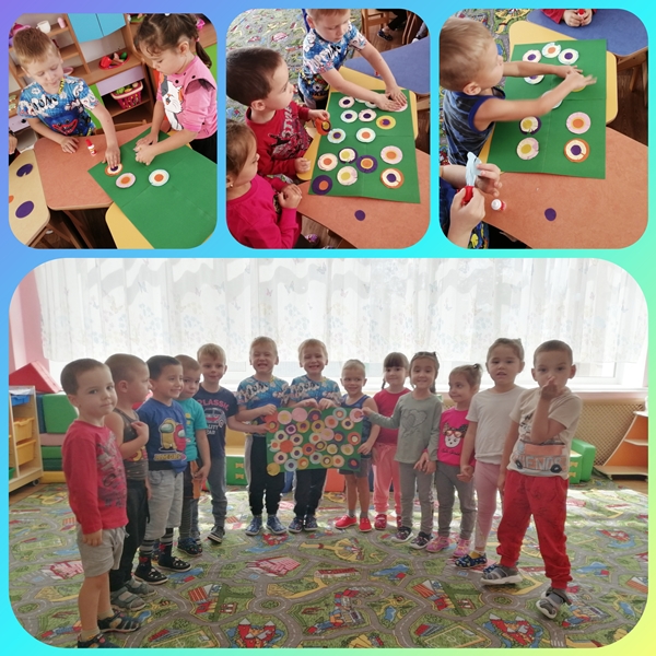 В процессе создания коллективной аппликации "Цветочная полянка" дети группы "Лучики" (воспитатель - Гасанова М. Б.) работали сплоченной командой: сообща подбирали цвета, формы, обращались за помощью друг к другу, полностью погрузившись в процесс создания своего творения. Ребята остались очень довольны результатом своего труда, а коллективное панно теперь станет украшением группы!