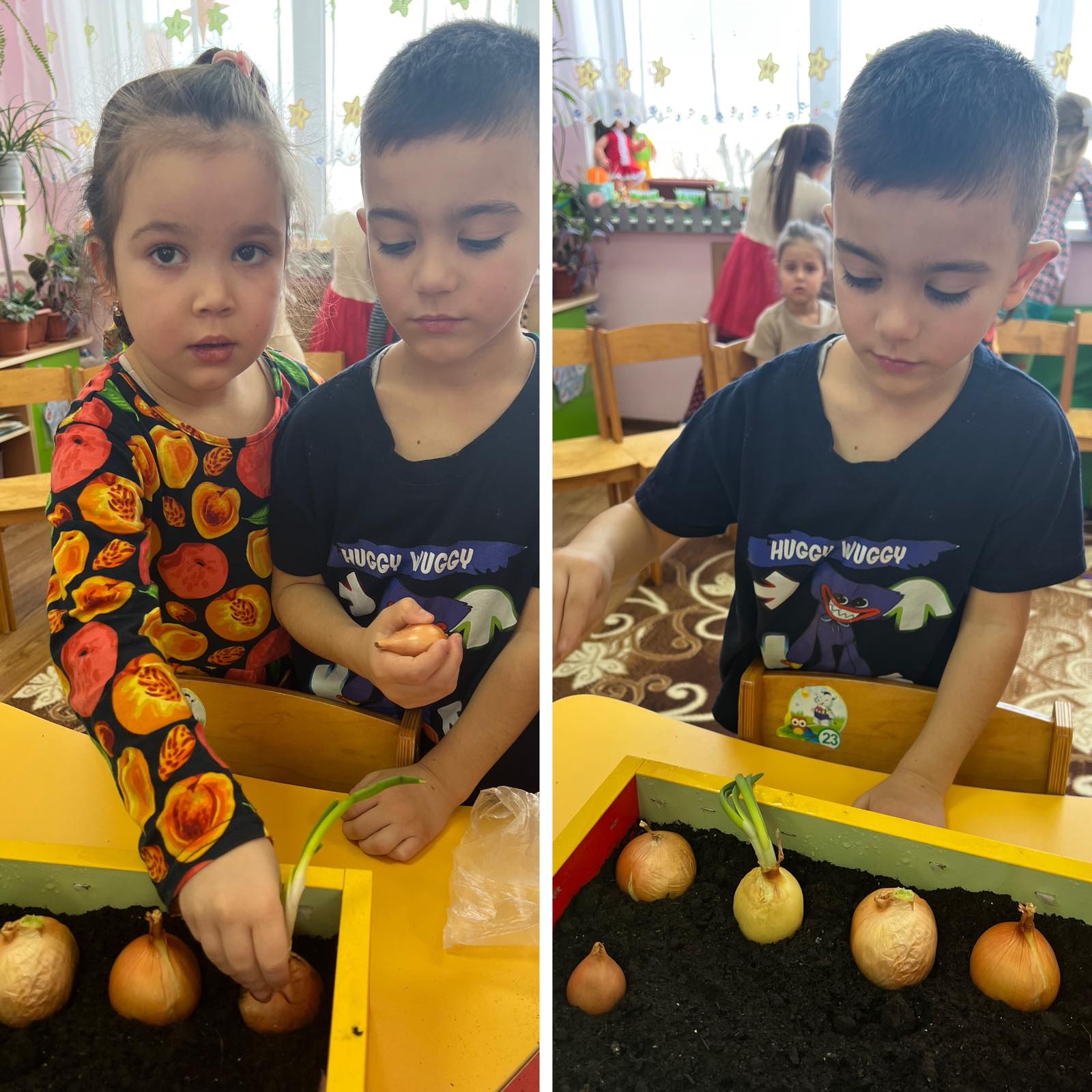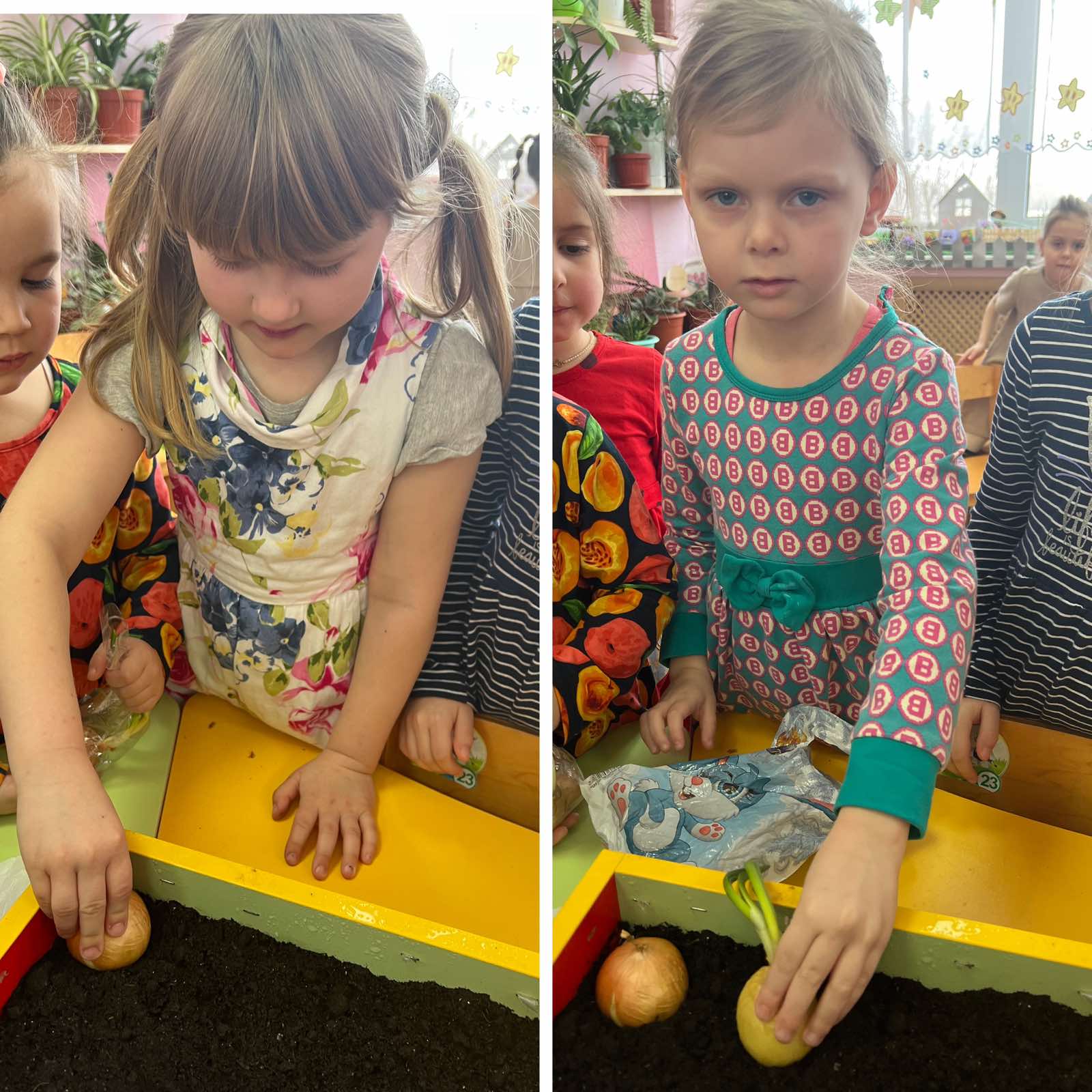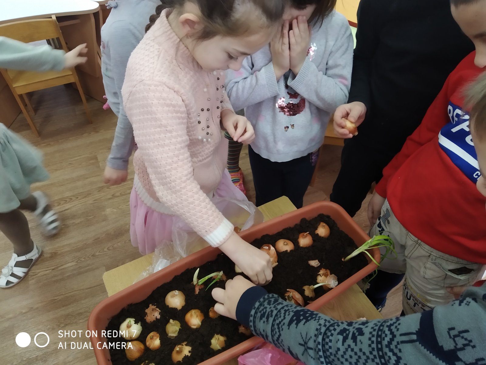 В "День стихии Земля" запустили проект "Огород на подоконнике", высадив лучок и чеснок на зелень, также посеяли укроп и петрушку.