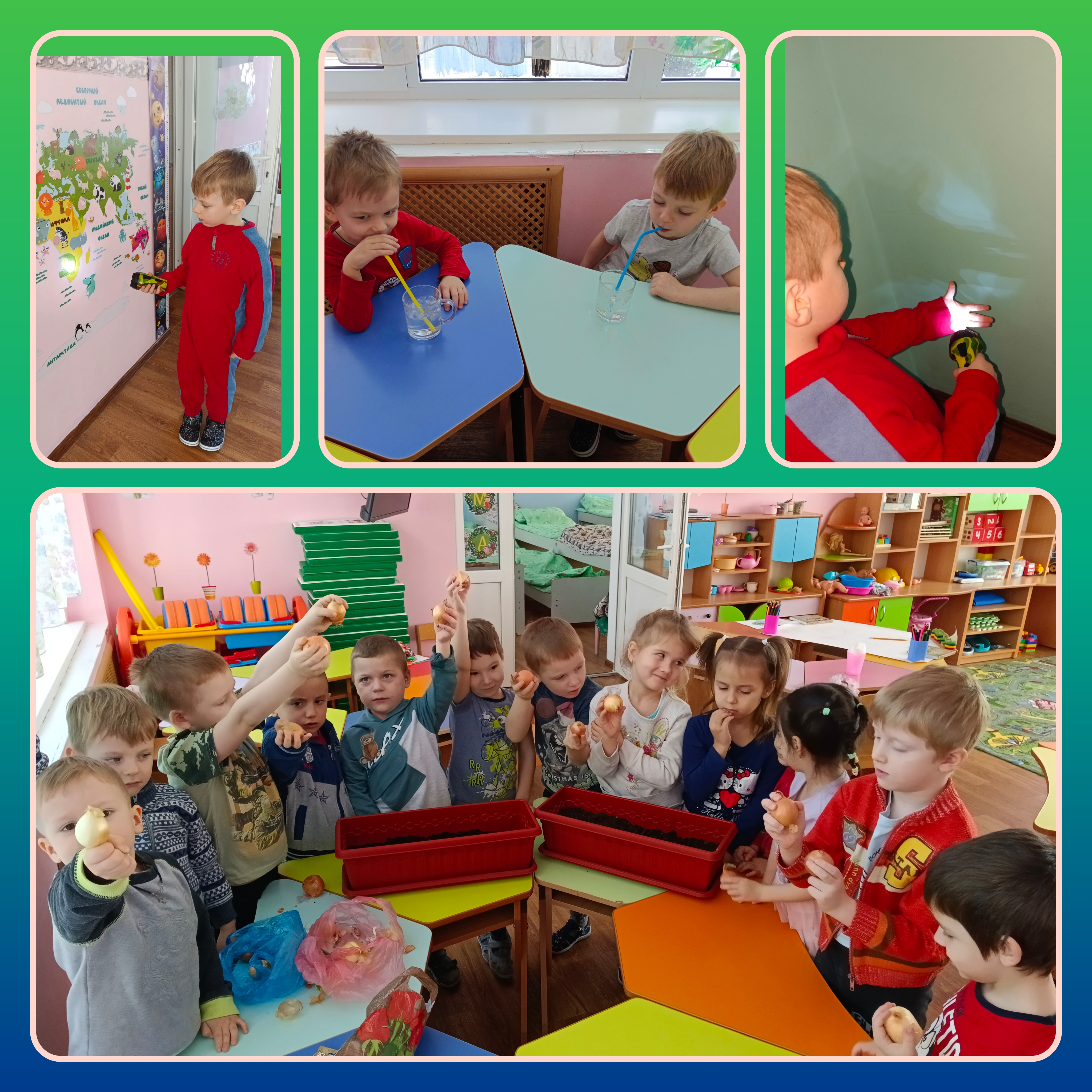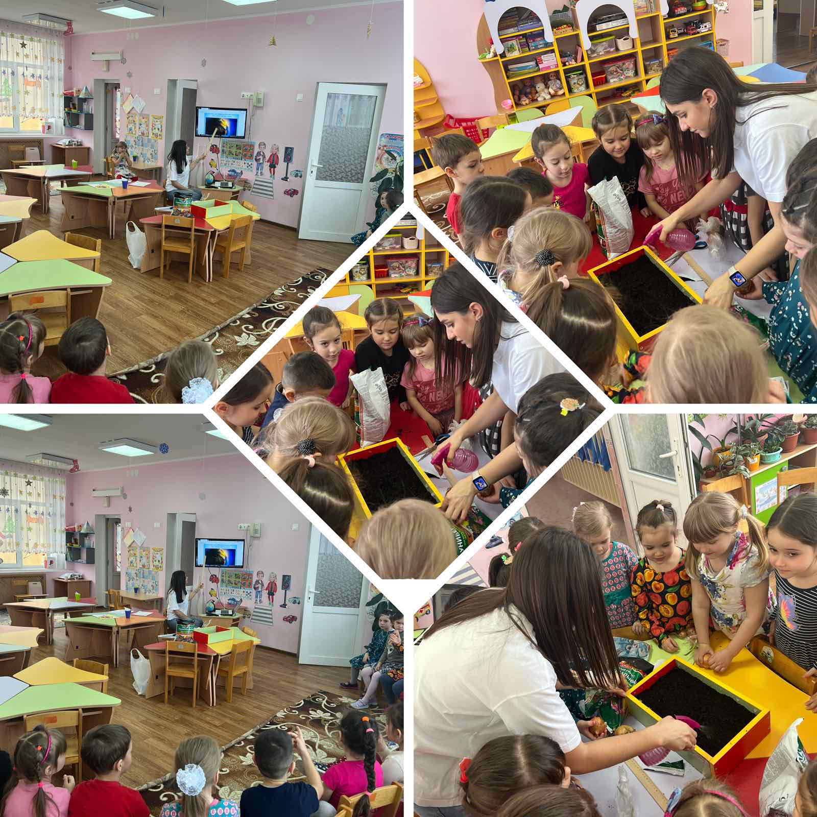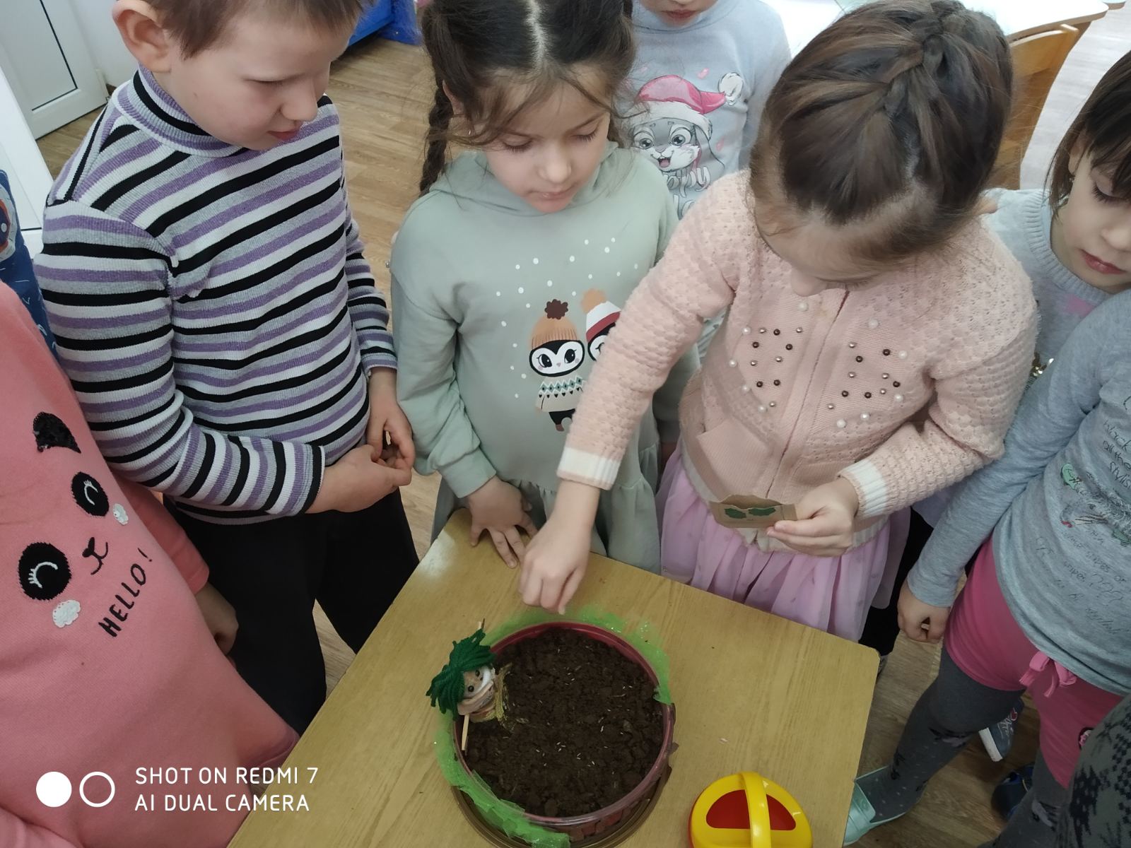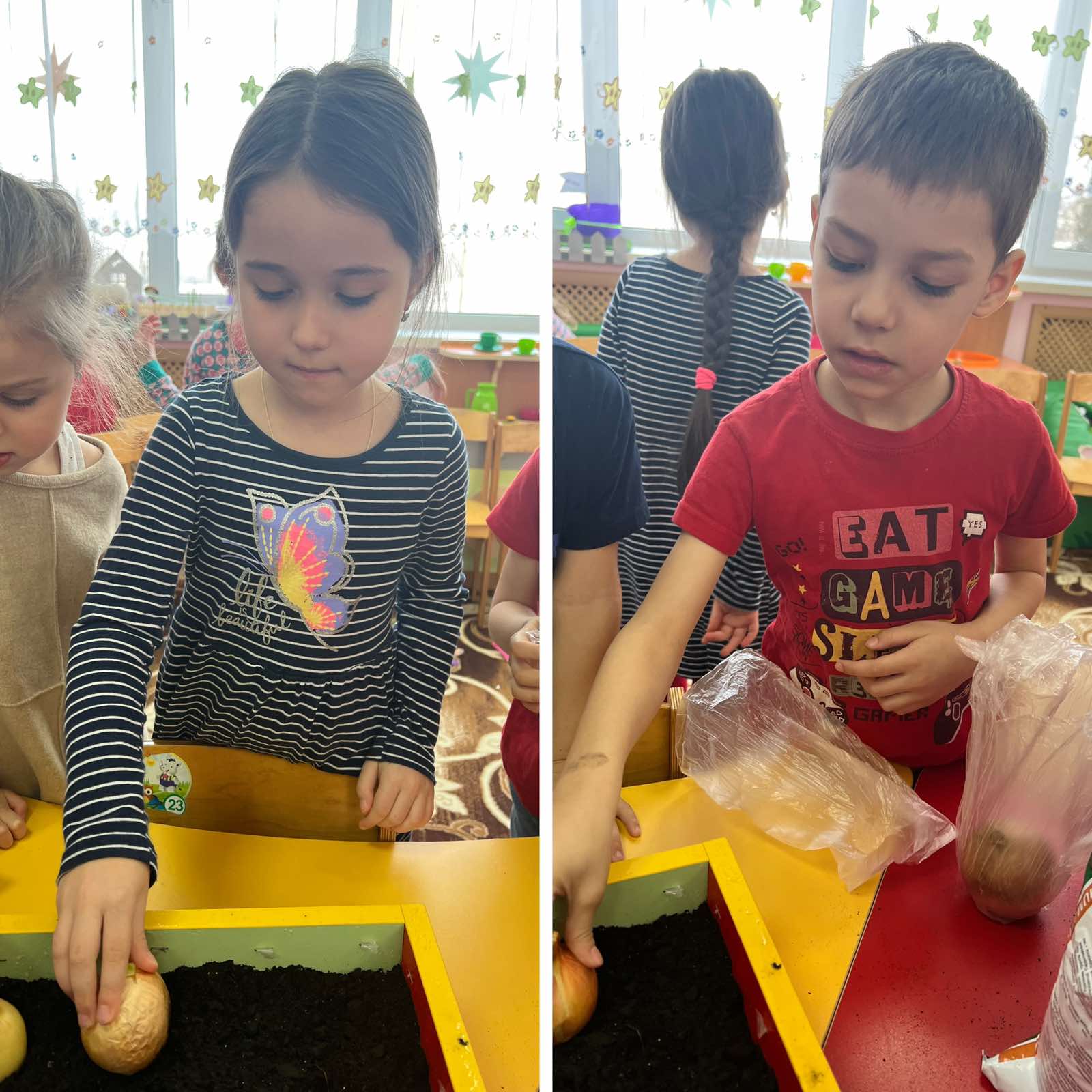 В "День стихии Земля" запустили проект "Огород на подоконнике", высадив лучок и чеснок на зелень, также посеяли укроп и петрушку.