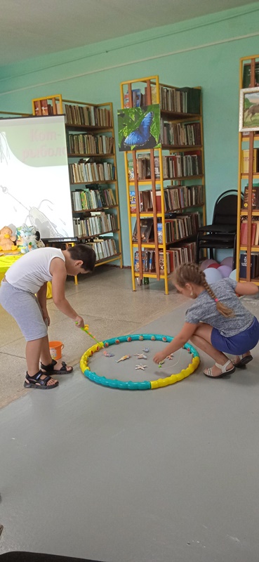 Далее ребята познакомились с некоторыми книгами, а кое-какие вспомнили сами. Вниманию ребят были предложены следующие произведения В. Сутеева: «Кот-рыболов», после прочтения которой ребята побывали на рыбалке, где прошли соревнования в ловле рыбок. Прослушали сказки «Палочка-выручалочка» и «Мышка и карандаш», «Яблоко», после которой коллективно рисовали ёжика с яблоками, а также приняли участие в инсценировки сказки «Кто сказал Мяу?»