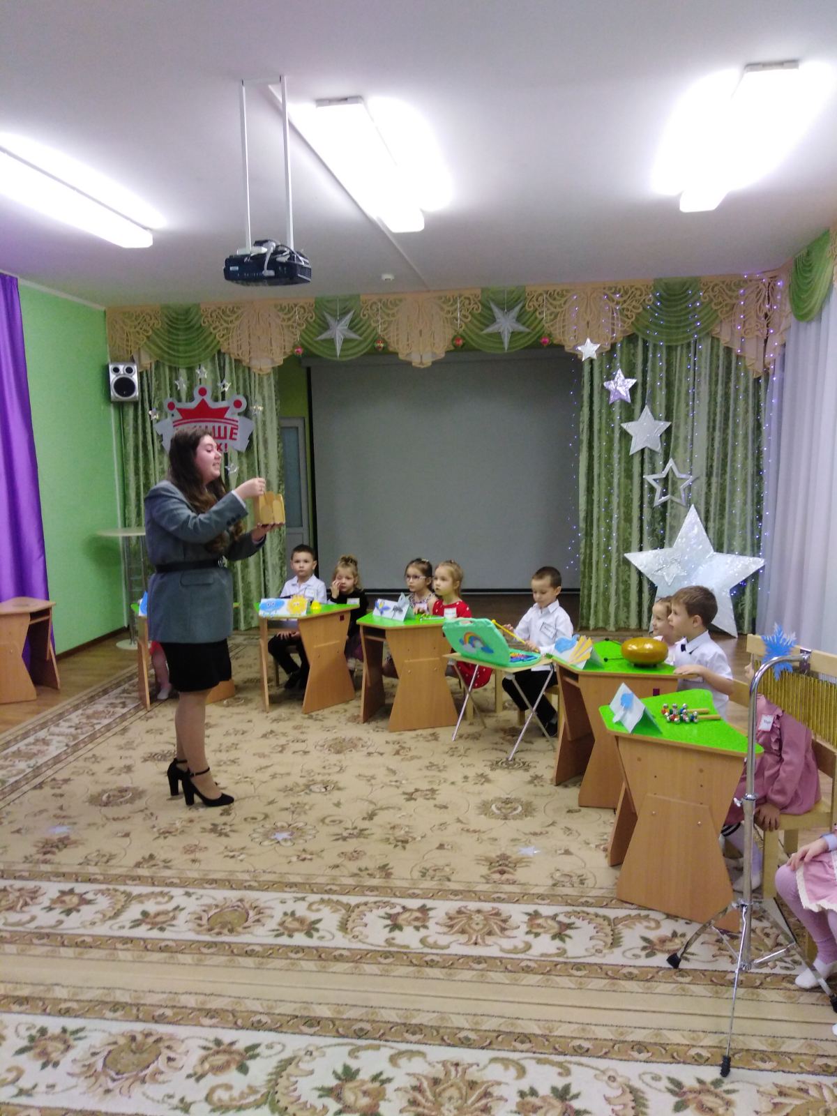 В то время, когда жюри оценивало мастерство воспитателей , свои таланты песенного, танцевального, гимнастического мастерства демонстрировали воспитанники подготовительных групп детского сада.